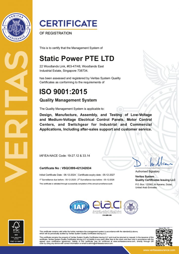 Fifteen years later, designing and manufacturing of Synchronizing Panel still remain as Static Power Pte Ltd core business, nevertheless, under Mr. Lee’s guidance the company has since doubled in size and facilities and increase in manpower with growing International presence. The company has since worked with many trusted partners to diversify part of the business offerings into other product range such as Busduct, Consulting service and Trading in components and commodities.